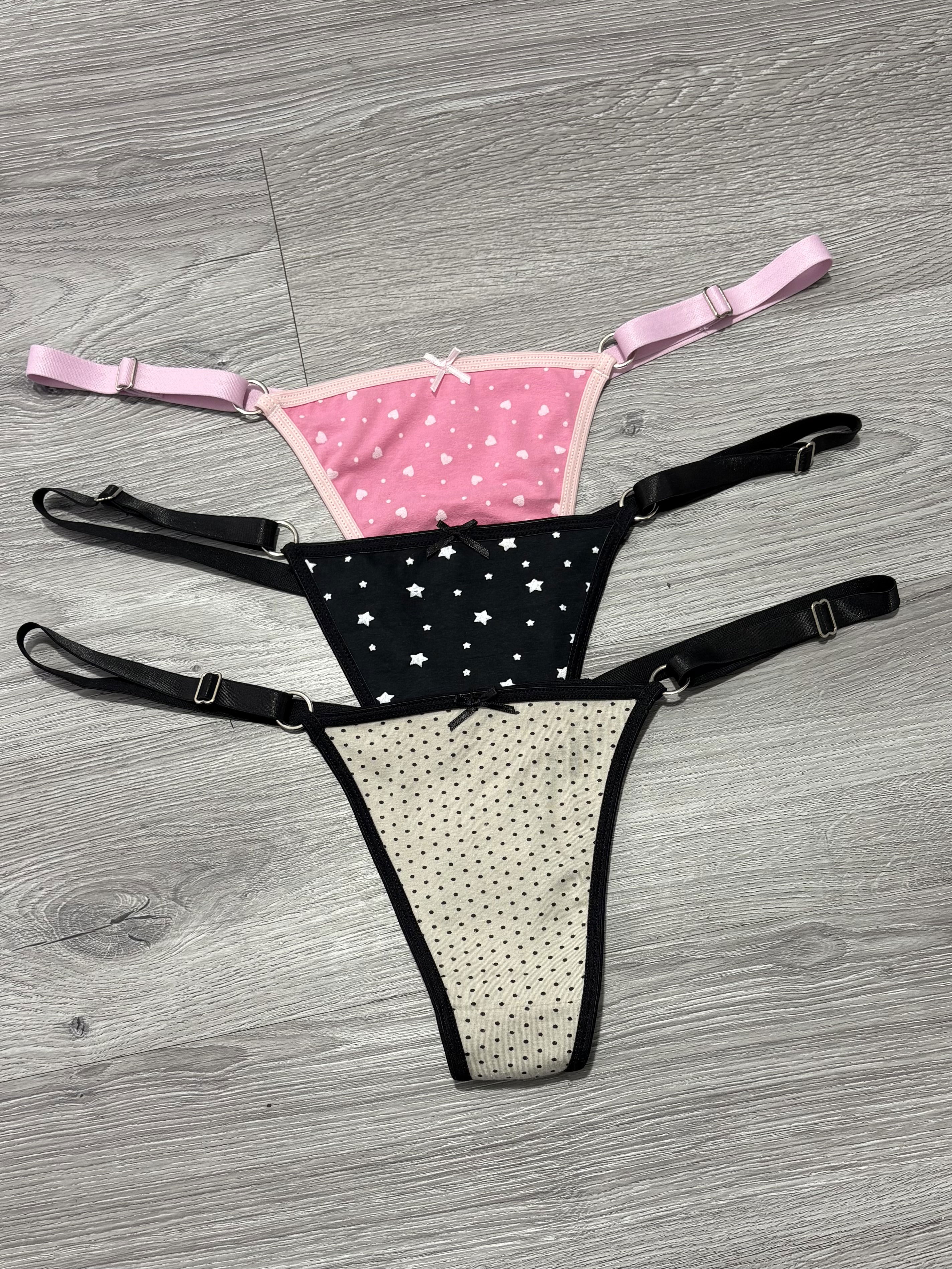 Colaless regulables con bretel ancho de 1,5cm. Confeccionadas en algodón con lycra, tiro bajo.