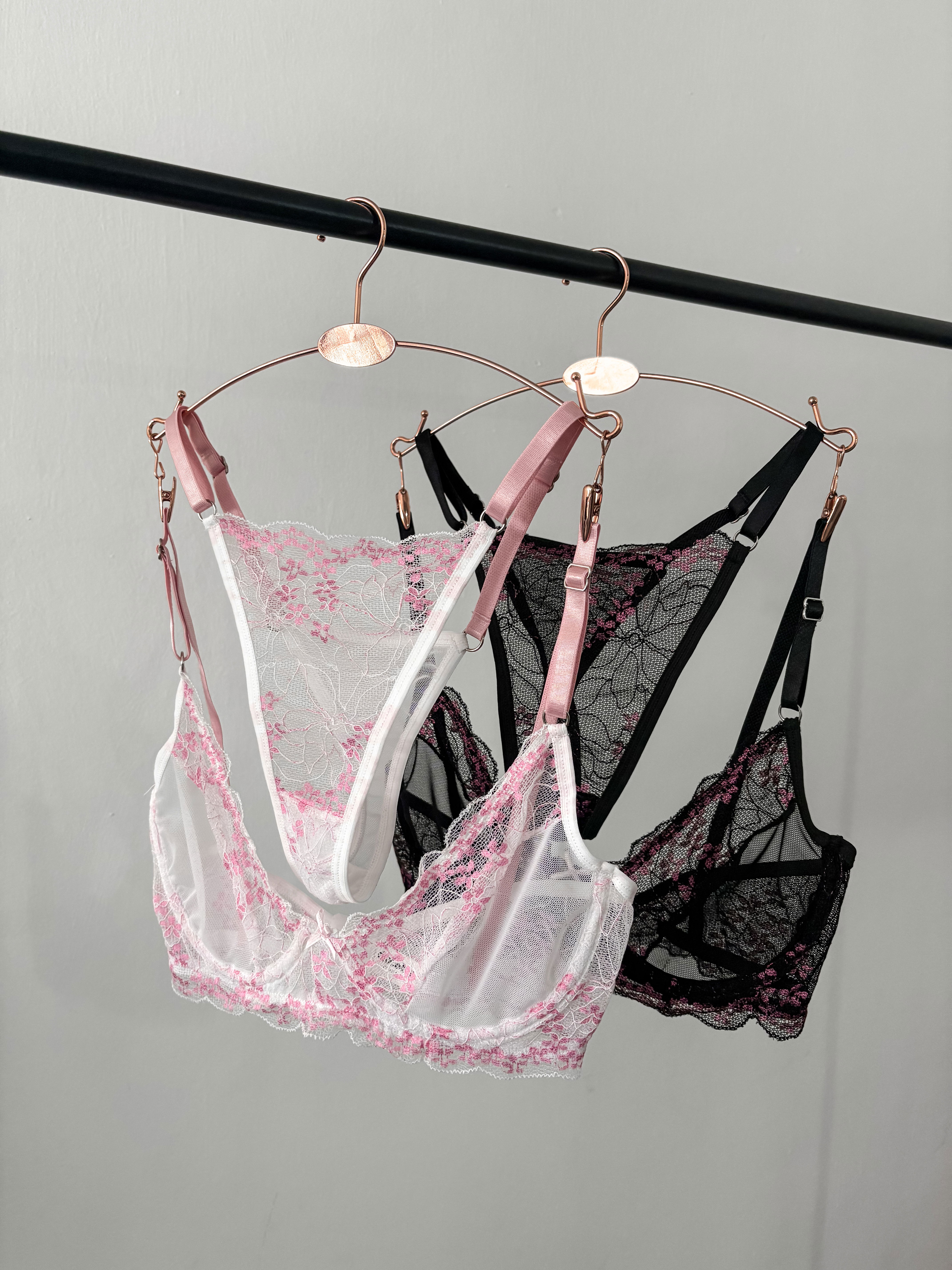 Conjunto hecho en puntilla y microtul elastizado. Corpiño con arco medio, y less regulable. Los talles +105 vienen con bretel ancho!